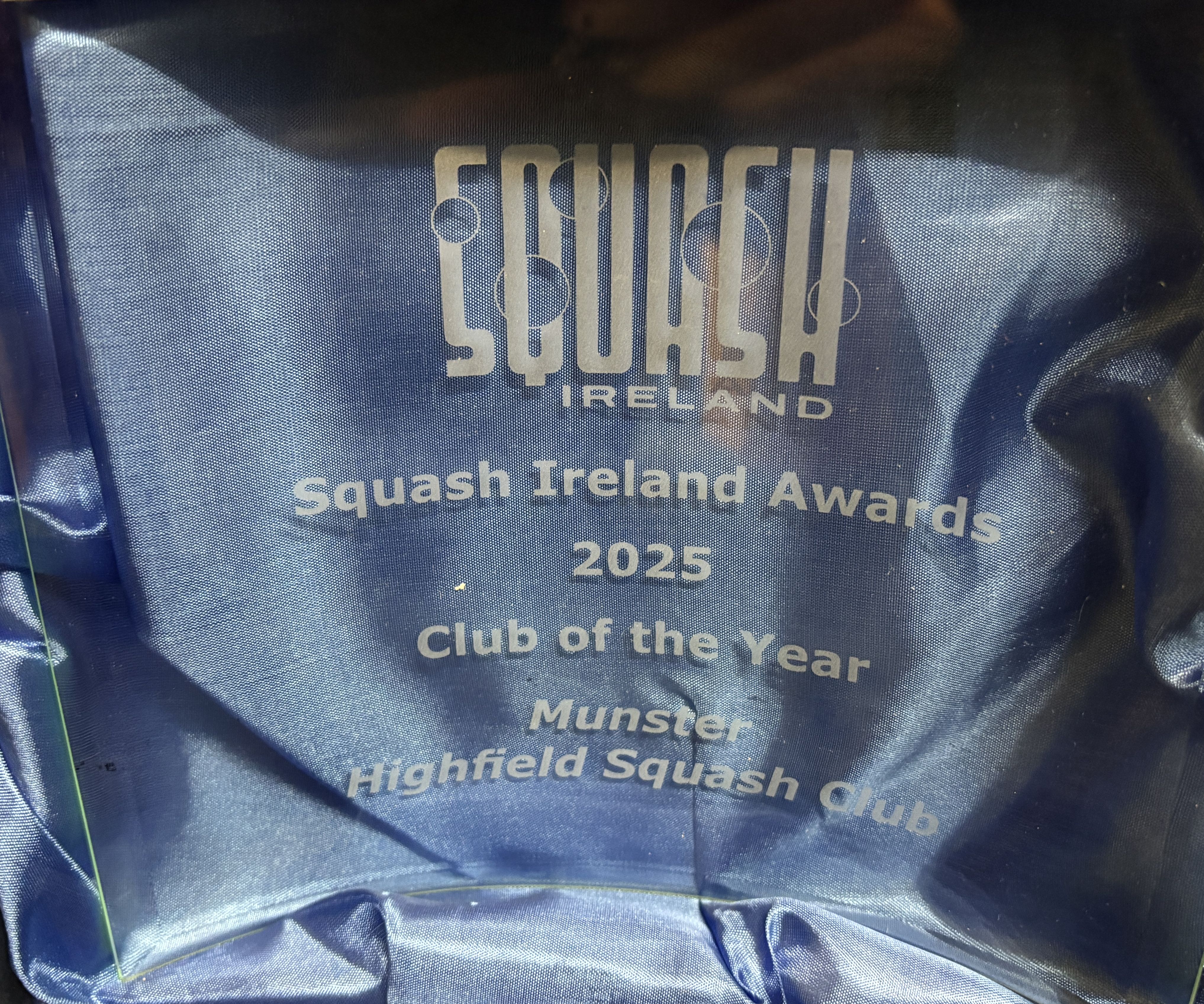 Congratulations to Tullamore who won the Squash Ireland Club of the Year award. We in Highfield were proud to be Squash Ireland's Munster Club of the Year. See our new trophy here.